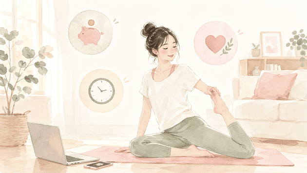 オンラインヨガが多くの女性に支持される背景には、費用・時間・心理的ハードルの3つが劇的に下がったことがあります。